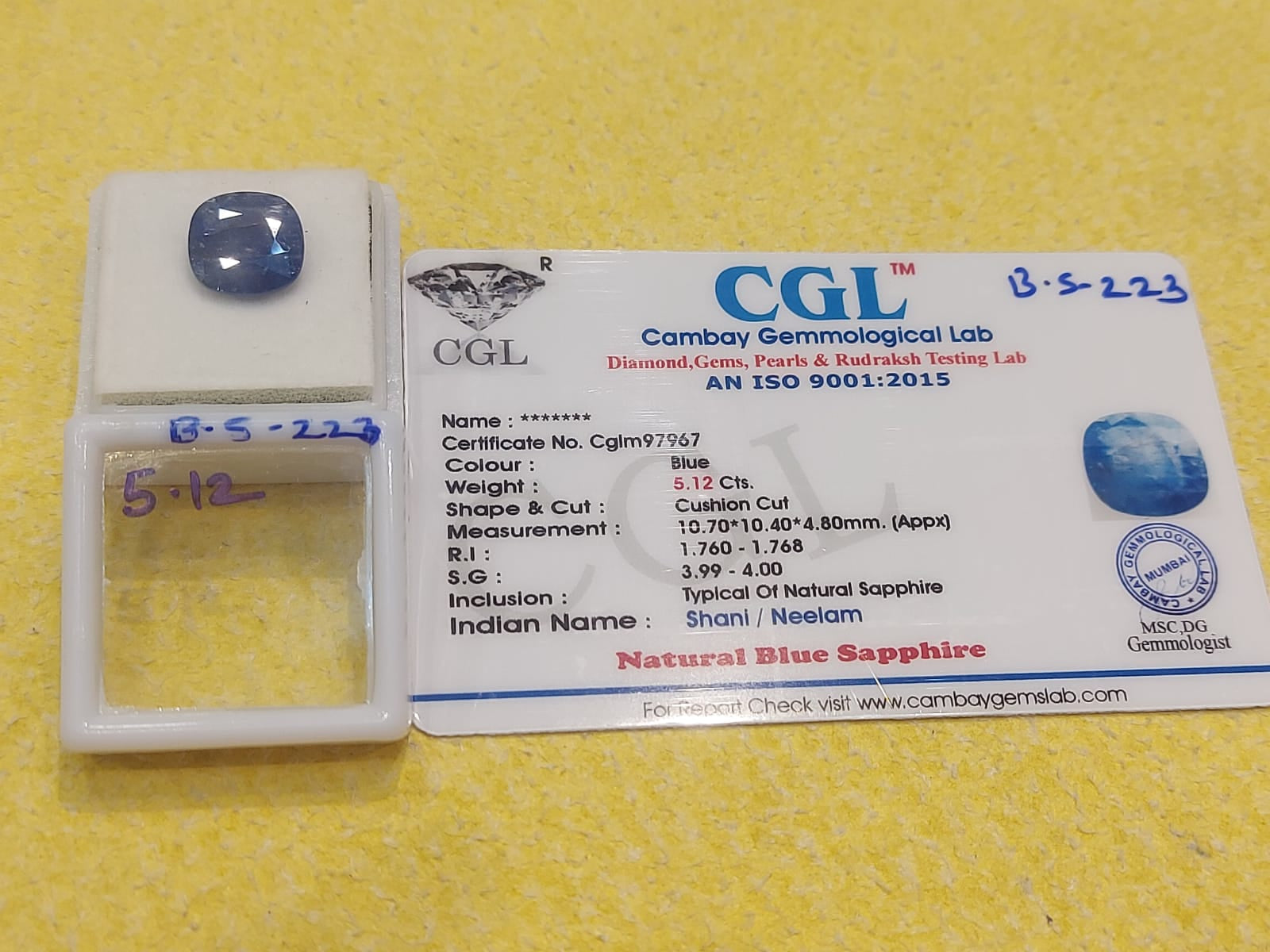 - B.S-223 5.12 Carat Natural Blue Sapphire Stone
