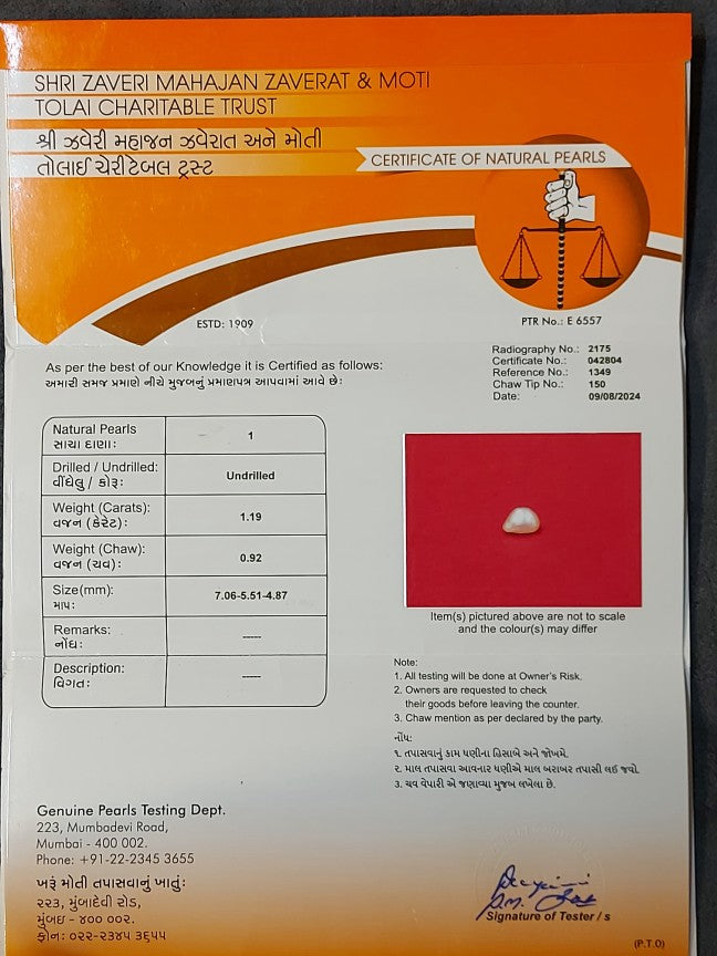 - 1.19 Carat Natural Pearl